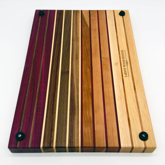 Discover the timeless craftsmanship of Larson Wood Designs’ Classic Long Grain Cutting Boards, featuring a selection of both edge grain and face grain boards. Expertly crafted from high-quality hardwoods, these boards highlight the natural beauty and durability of the wood, with no dyes used. Known for their strength and resistance to warping, edge and face grain boards are perfect for everyday use in the kitchen while also serving as elegant presentation pieces. Each board is finished with mineral oil and food-safe cutting board wax, providing a smooth, lasting surface. Designed for both practicality and style, these boards come with non-slip feet for stability and are built to withstand years of culinary use. Ideal for slicing, dicing, and serving, this collection brings functional beauty to your kitchen.